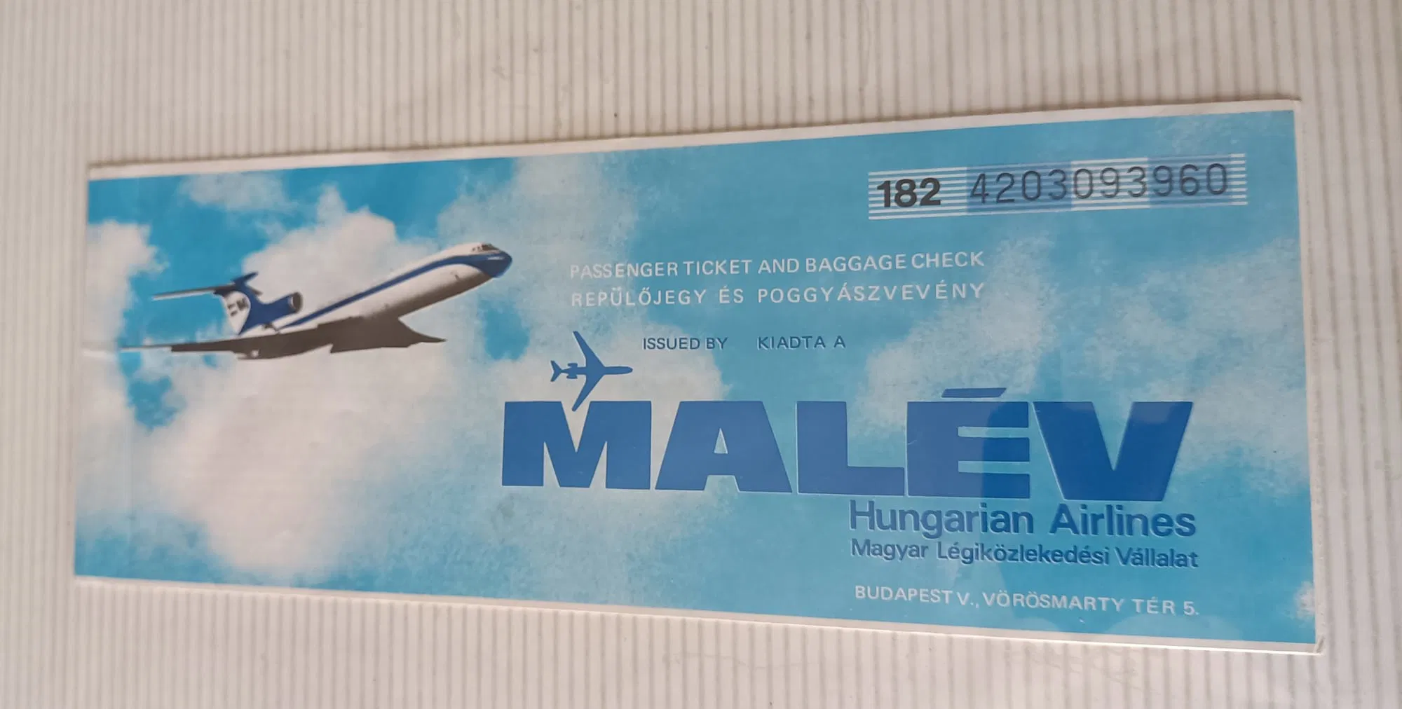MALEV TU154 AIR TICKET 80s