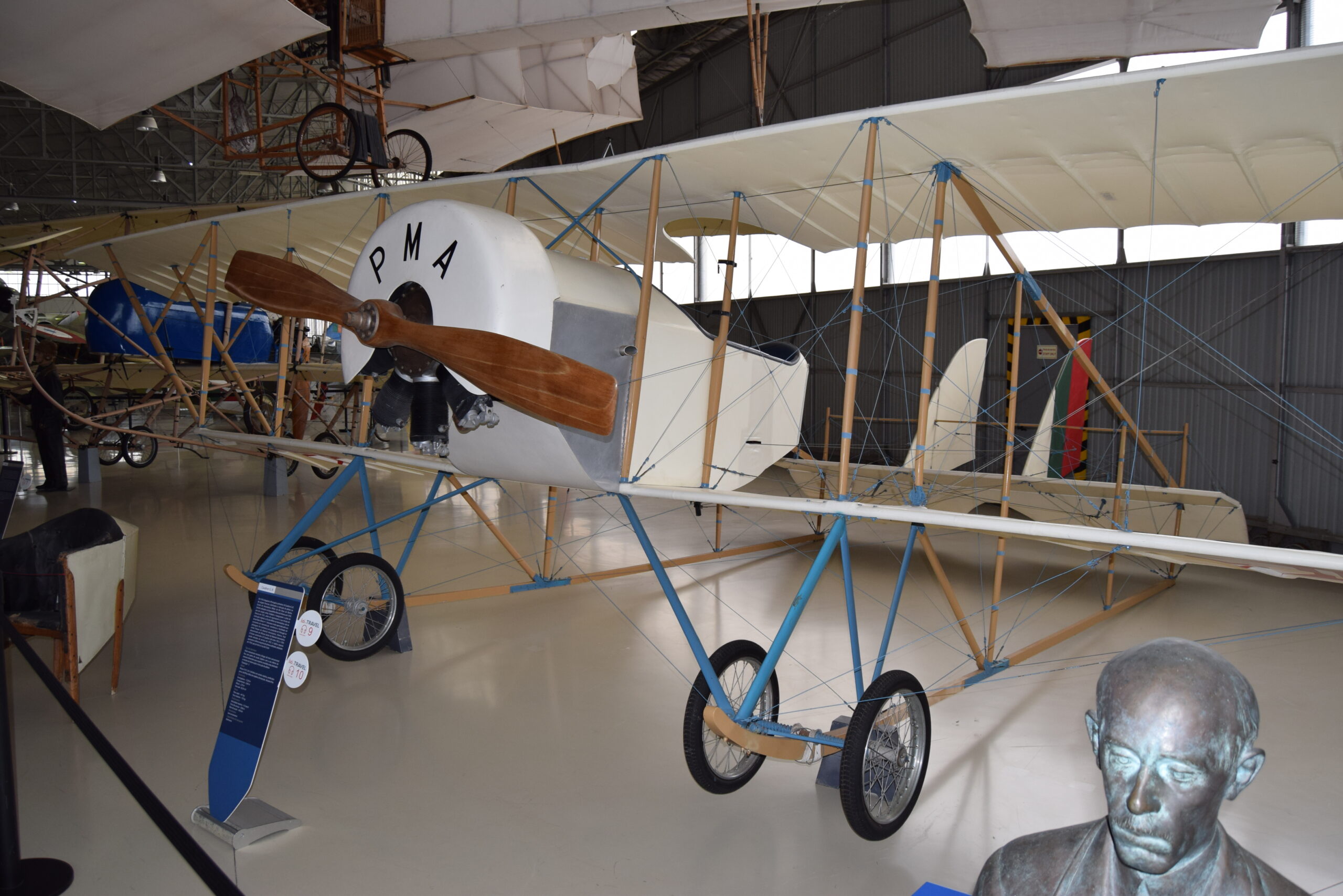 En relación a los aviones expuestos, tenemos como aviones destacables; Junker JU52 (1930), Avro Cadet (1931), DH-87 Hornet (1934), DH-89 Dragon Rapide (1934), Spitfire (1934), DC-3 Dakota (1935), F-86 Sabre (1958). biplano XIV Bis, de Santos Dumot,
