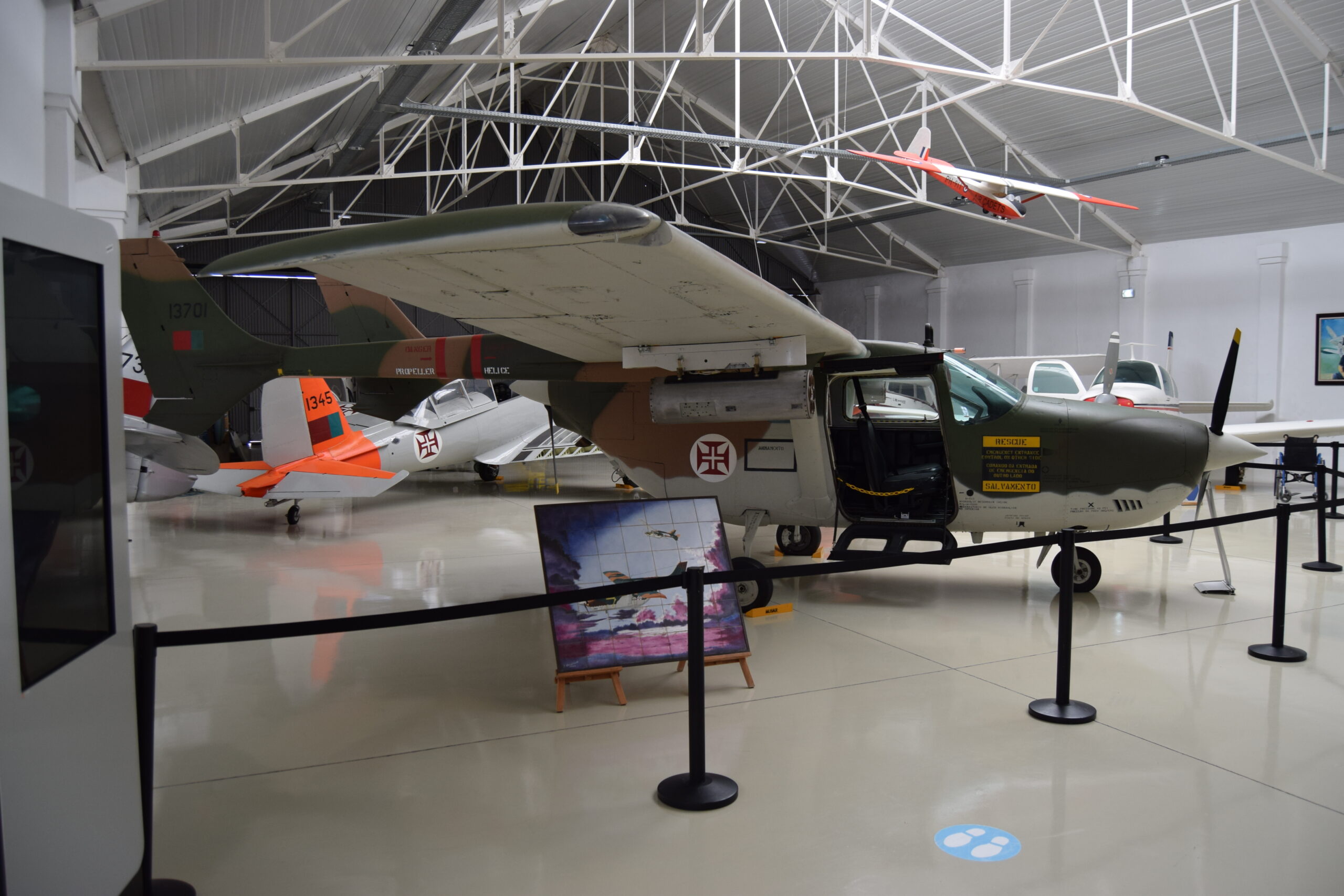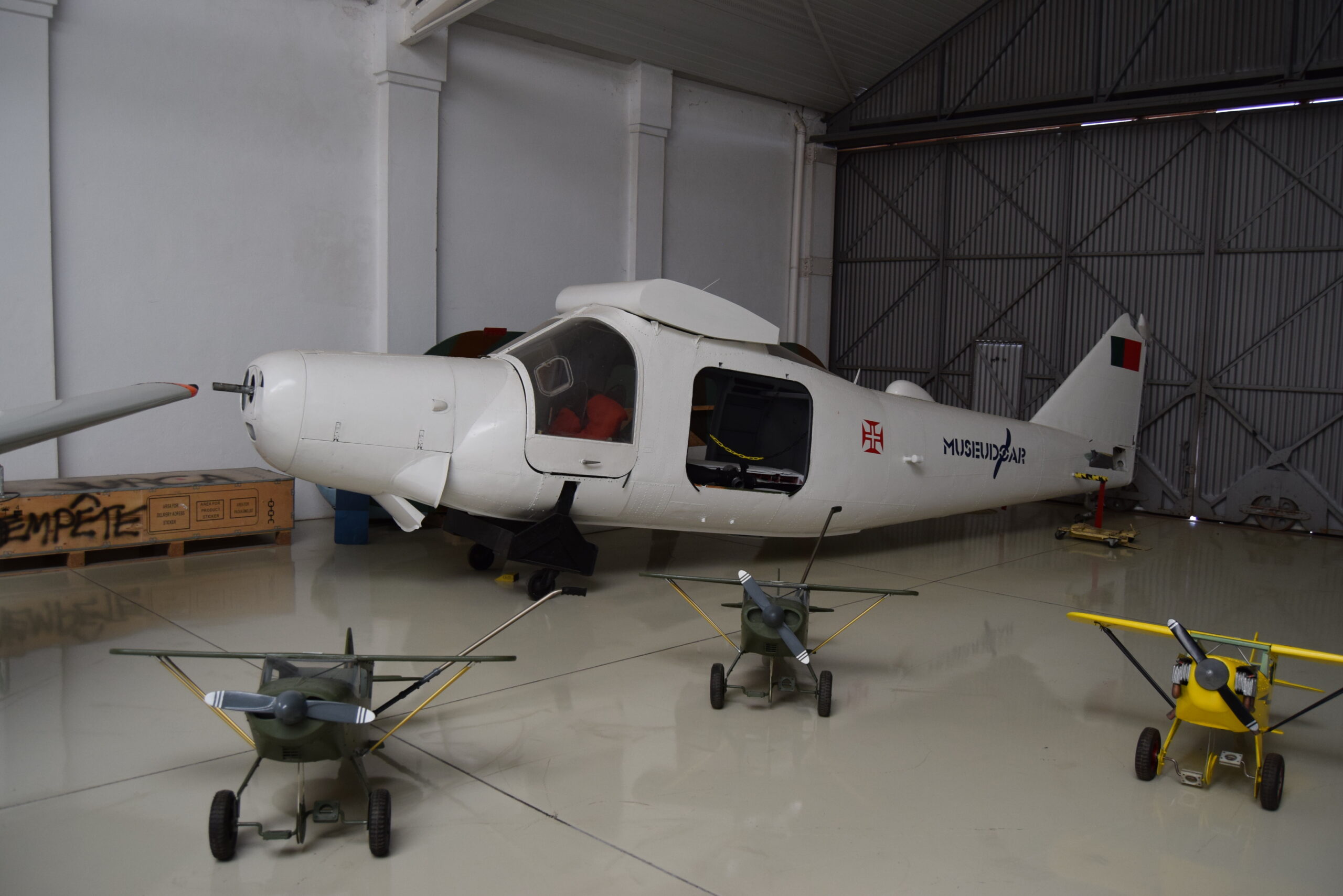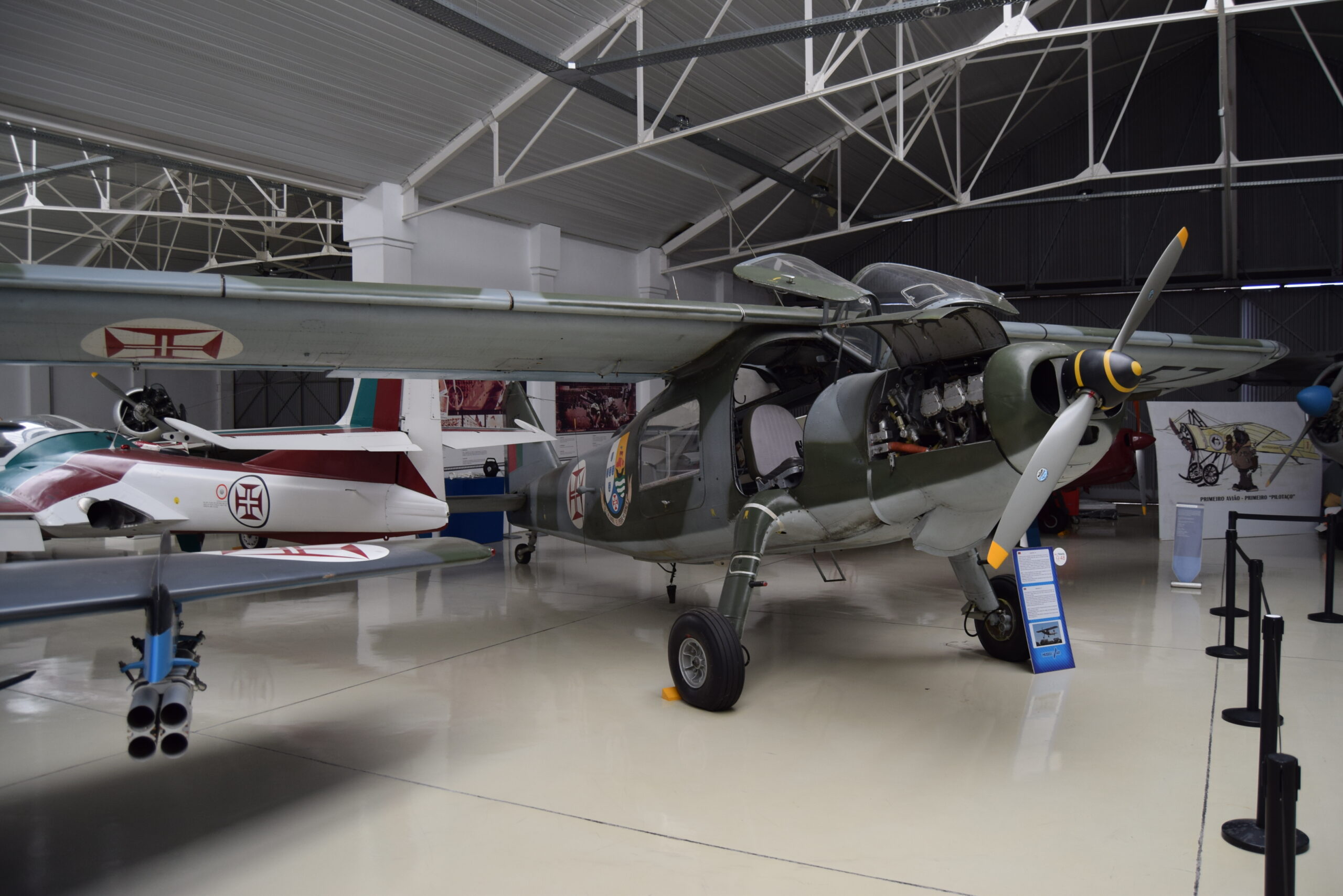 Data de los años 40, donde encontramos la mayoría de aviones expuestos, junto con un panel fotográfico con los 100 años de historia de la aviación portuguesa. Poniendo el punto inicial en 1909 cuando el piloto francés Armand Zipfel hiciera la primera demostración aérea con un pequeño avión Voisin Antoinette.