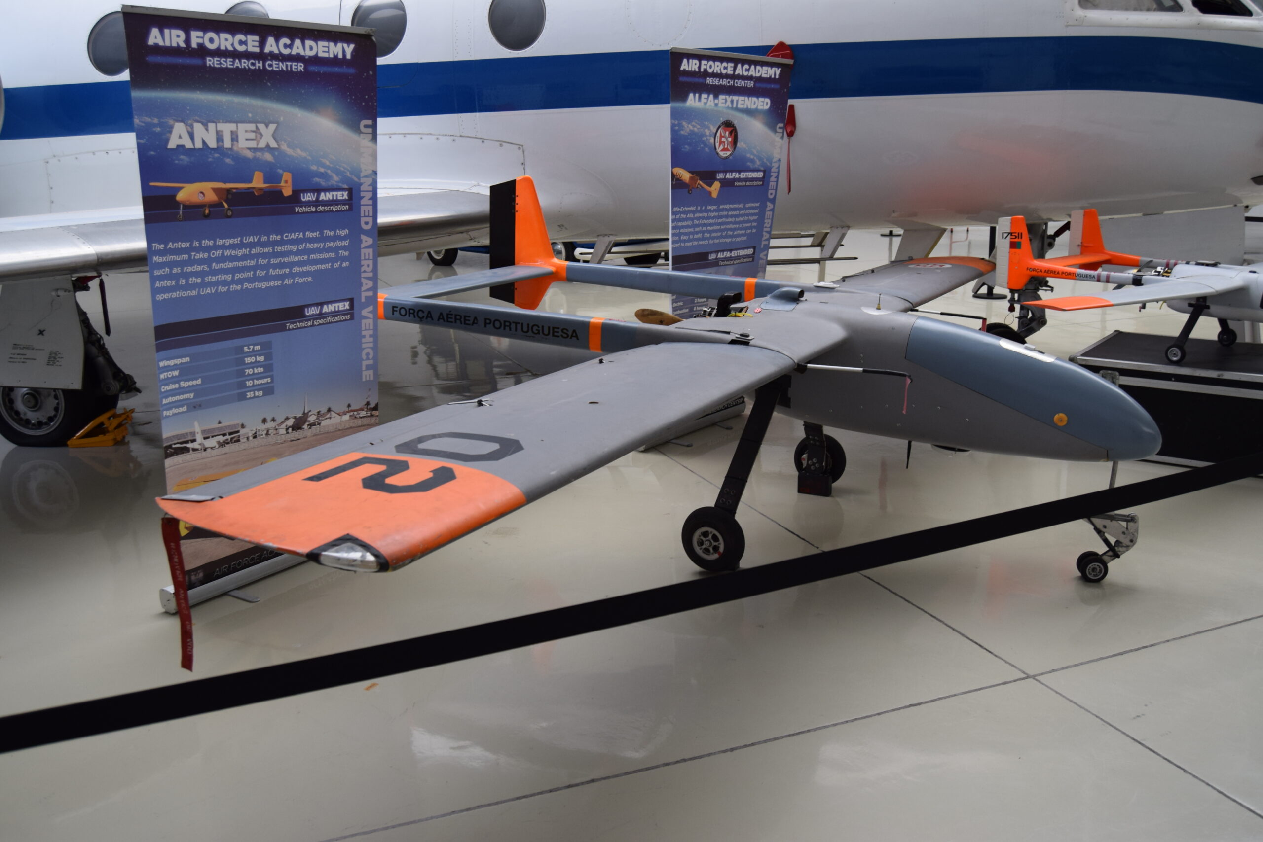 Estos hangares fueron construidos en 1920, y están repartidos entre una parte con aviones civiles, la otra con los medios aéreos empleados en los conflictos coloniales que participó Portugal y la tercera parte con los aviones de enseñanza junto con un Falcon 20 de transporte y calibración.